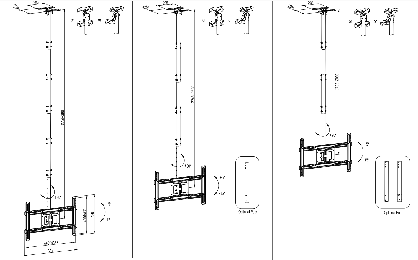 MD01-30 Universal Ceiling TV Mount, Adjustable Height and 360° Swivel Bracket for 32-80 Inch LED LCD Flat Screen TVs